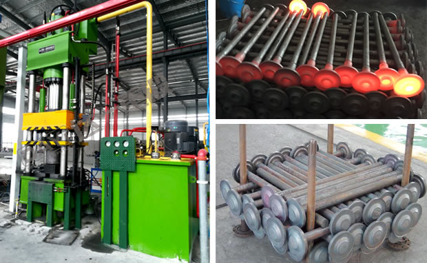 適用范圍:本系列液壓機(jī)為汽車半軸擺輾前預(yù)鐓和花鍵端鐓粗工藝專用;也可以完成金屬棒料的端部鐓粗等工藝。 可選配功能附件:本系列液壓機(jī)含成套自動(dòng)加緊、開合模座。
