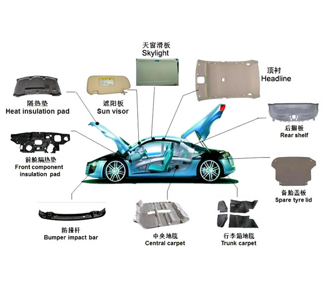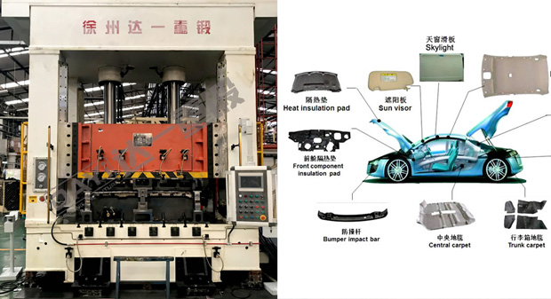 汽車內飾件成形液壓機主要應用于汽車內飾件行業(yè)的熱壓成形及切邊工藝,如頂棚、地毯、座墊、防火壁絕緣墊、側圍、行李箱地毯等。